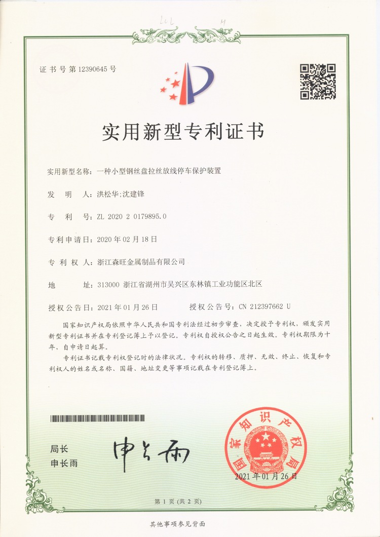 浙江森旺金屬制品有限公司成立于2012年,坐落湖州市吳興區(qū)東林鎮(zhèn)工業(yè)功能區(qū)。公司專(zhuān)業(yè)從事各類(lèi)鍍鋅鋼絲、鋼絞線(xiàn)等產(chǎn)品的開(kāi)發(fā)及生產(chǎn)。目前產(chǎn)品已廣泛應(yīng)用于各類(lèi)通信光電纜,電力輸送,電氣化鐵路工程,各類(lèi)堤壩防護(hù)及農(nóng)業(yè)溫室等工程領(lǐng)域。公司秉承“追求卓越品質(zhì),創(chuàng)建卓著信譽(yù)”的經(jīng)營(yíng)理念,始終堅(jiān)持專(zhuān)業(yè)化、規(guī)模化的經(jīng)營(yíng)模式。